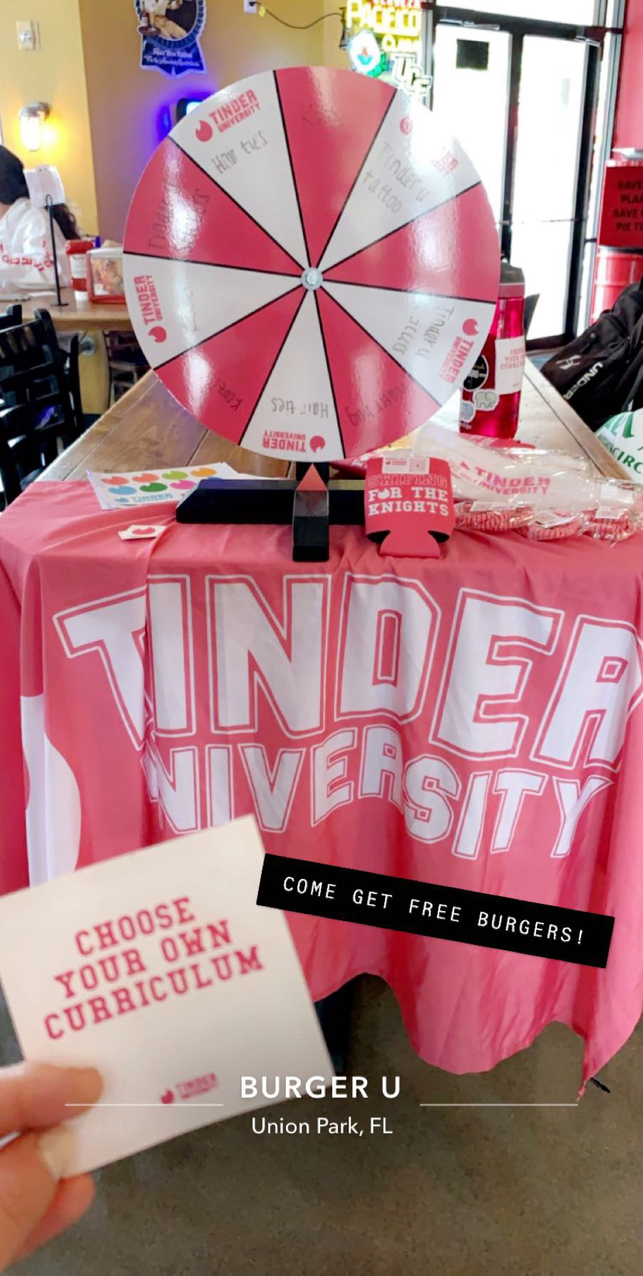 Burger U located on UCF campus. We handed out a ton of cool merch and gave away a bunch of yummy free burgers. Users met up with their dates and got a free bite to eat!