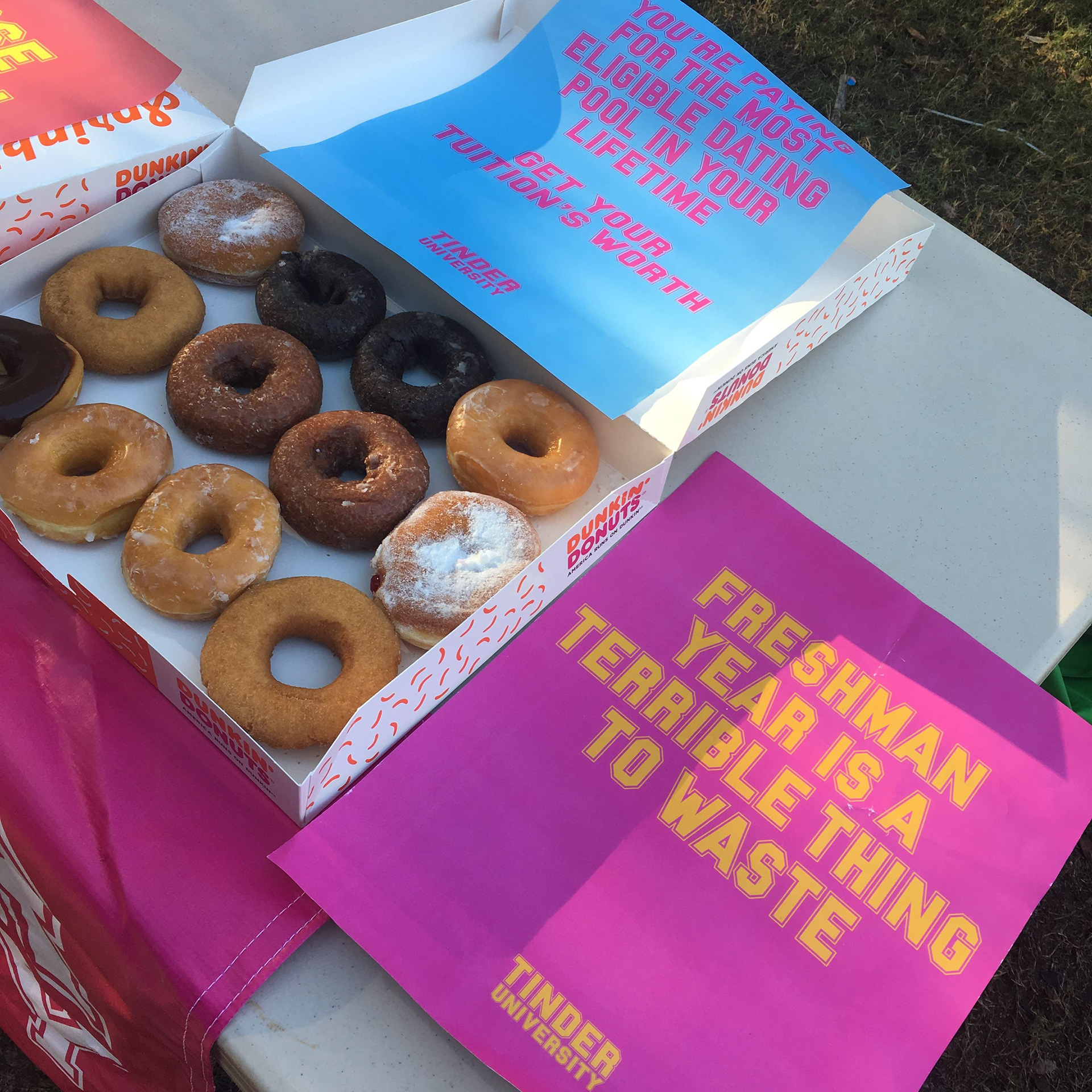 This was actually one of our first on-campus events. We gave out free donuts and during this event we tried to get students passing by to sign up for Tinder. We ended up recruiting about 125 new users.